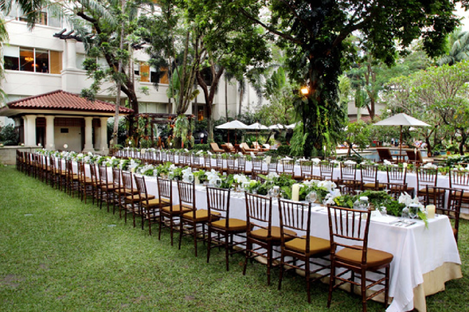 If the four walls of a ballroom are not big enough for your celebration, you can take your wedding party to the great outdoors..